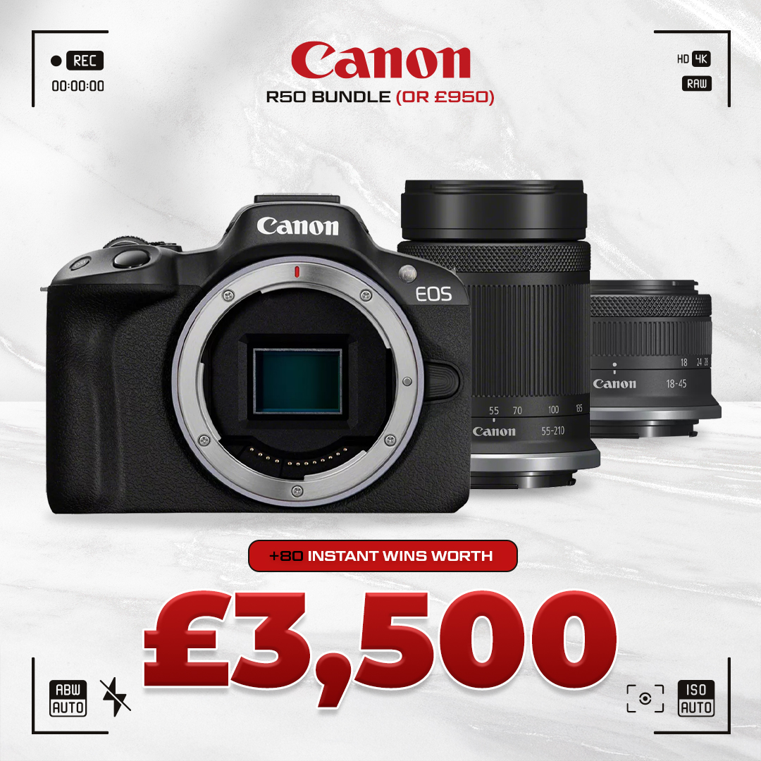 | 1 | 1× | Canon R50 Bundle (or £950) - IW Main Prize |