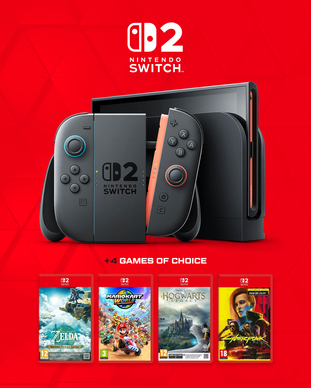 | 1 | 1× | Nintendo Switch 2 with 4 Games of Choice |