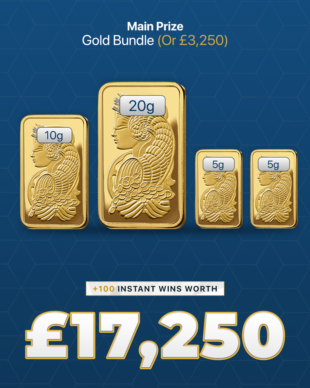 | 1 | 1× | Gold Bundle (or £3,250) - IW Main Prize |