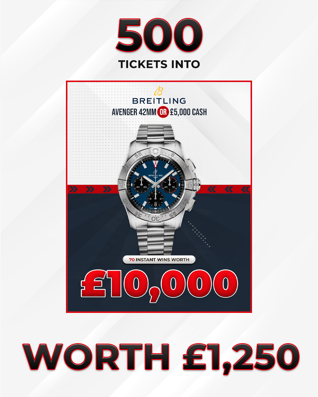 | 1 | 1× | 500 Entries Into The Breitling Avenger Comp |