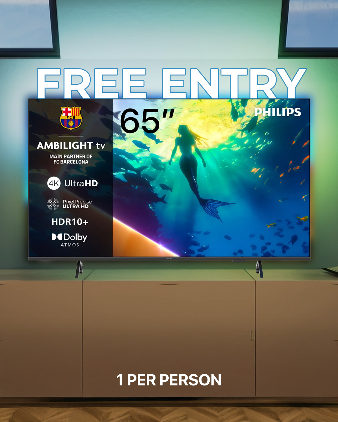 | 1 | 1× | FREE Philips 65″ Ambilight 4K HDR TV |