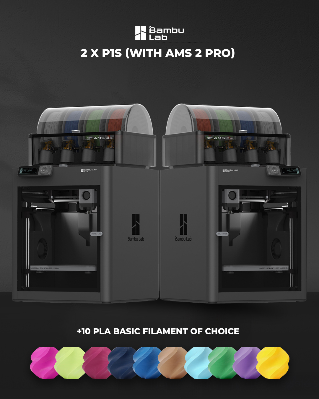 | 1 | 1× | 2 x Bambu Lab P1S with AMS 2 Pro & 10 x Filament |