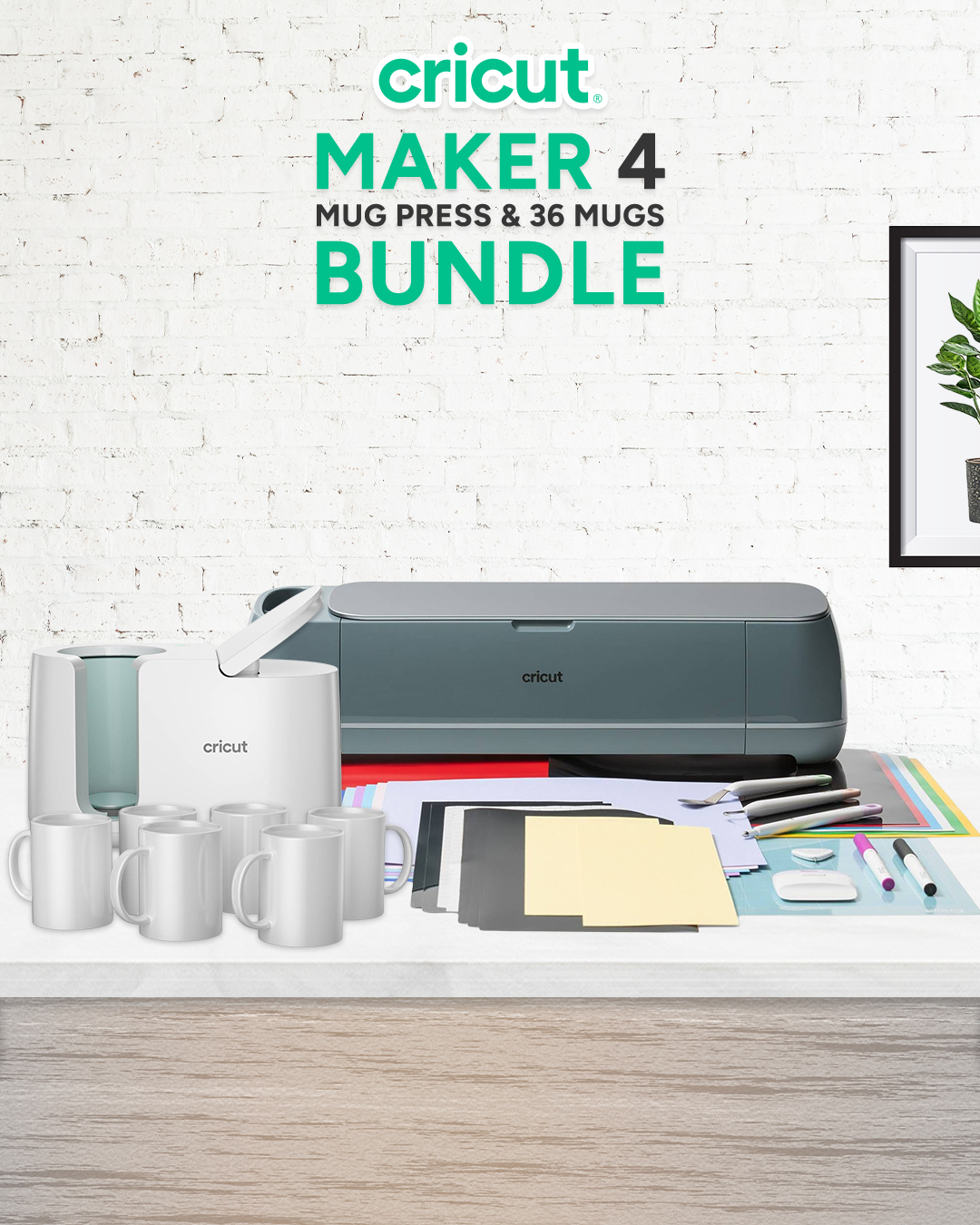 Cricut Maker 4 Bundle, Mug Press & 36 Mugs