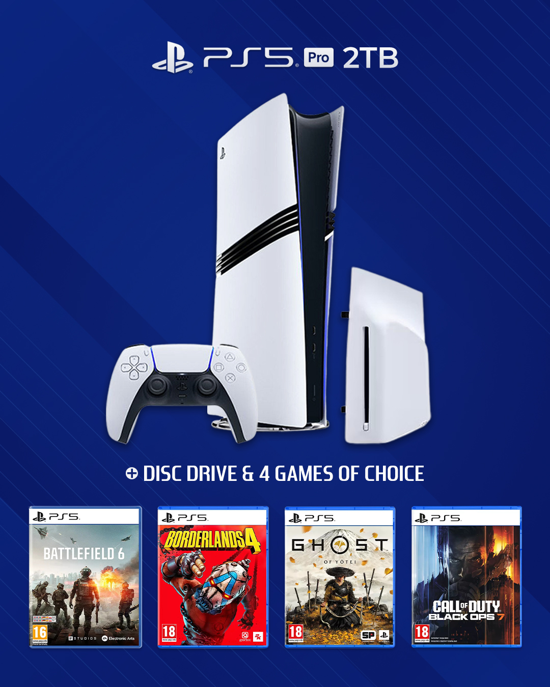 | 1 | 1× | PS5 Pro, Disc Drive & 4 Games of Choice |