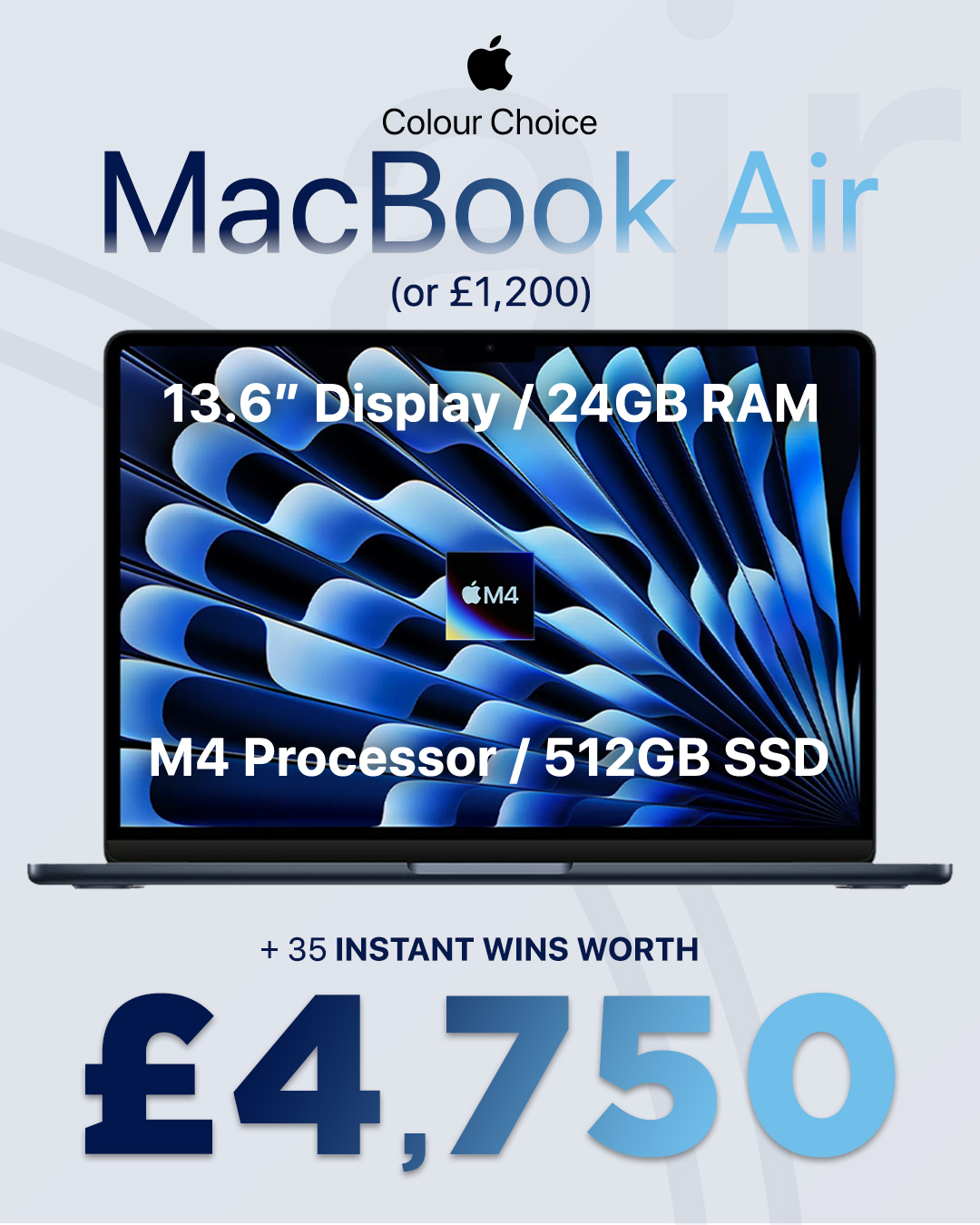 | 1 | 1× | 2025 MacBook Air (or £1,200) |