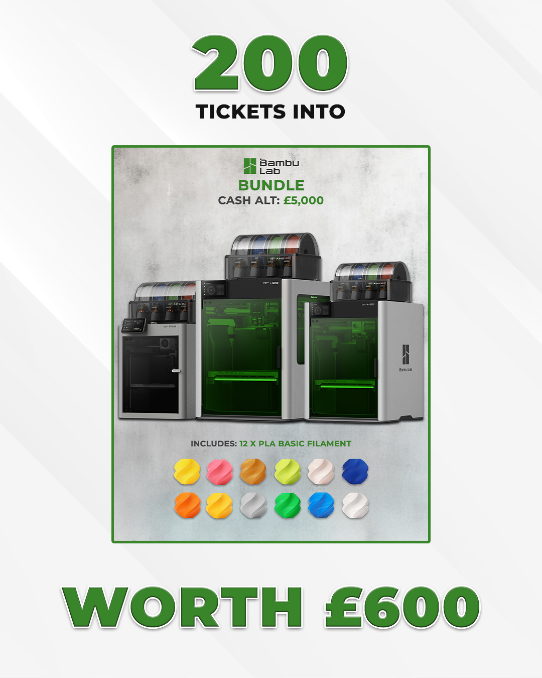 | 1 | 1× | 200 Entries Into The Bambu Lab Bundle Competition |