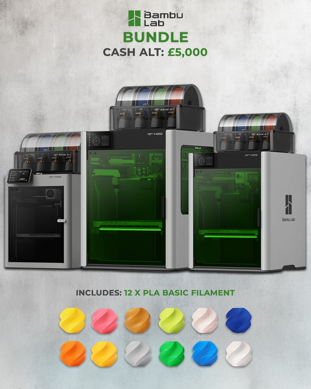 | 1 | 1× | Bambu Lab 3D Printer Bundle (or £5,000) |