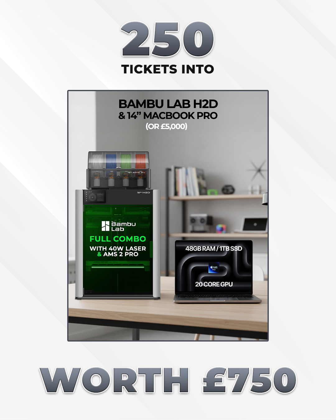 | 1 | 1× | 250 Entries Into The Bambu Lab & MacBook Comp |