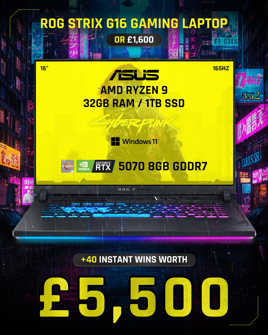 | 1 | 1× | ASUS ROG Gaming Laptop (or £1,600) |