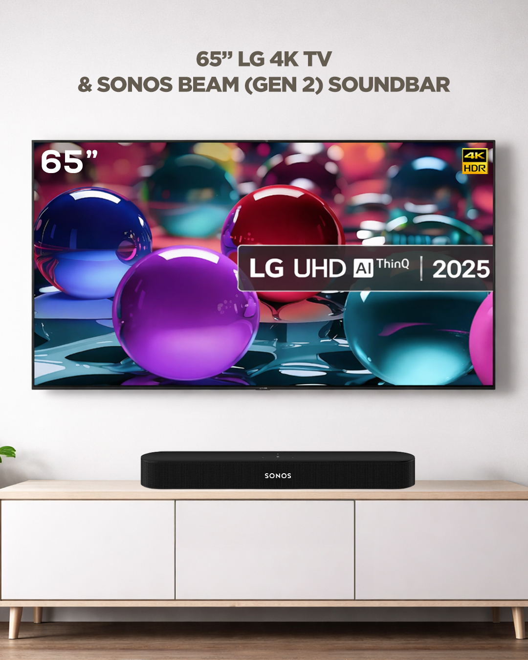 | 1 | 1× | 65” LG 4K TV & Sonos Beam (Gen 2) Soundbar |