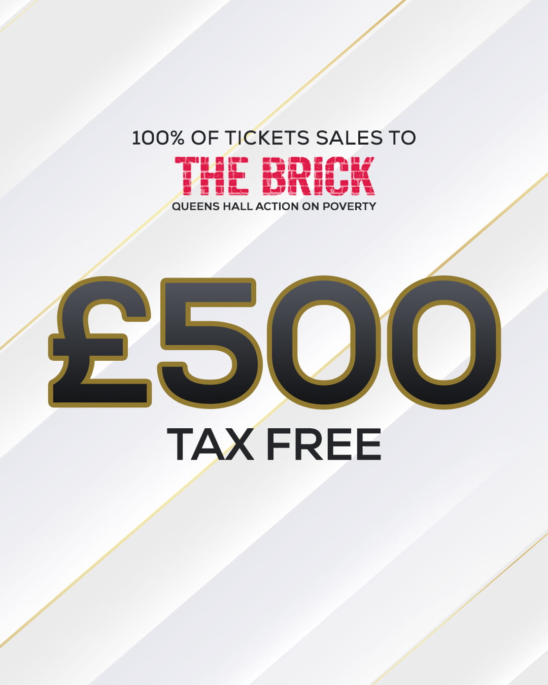 £500 Cash – 100% of Tickets to Charity