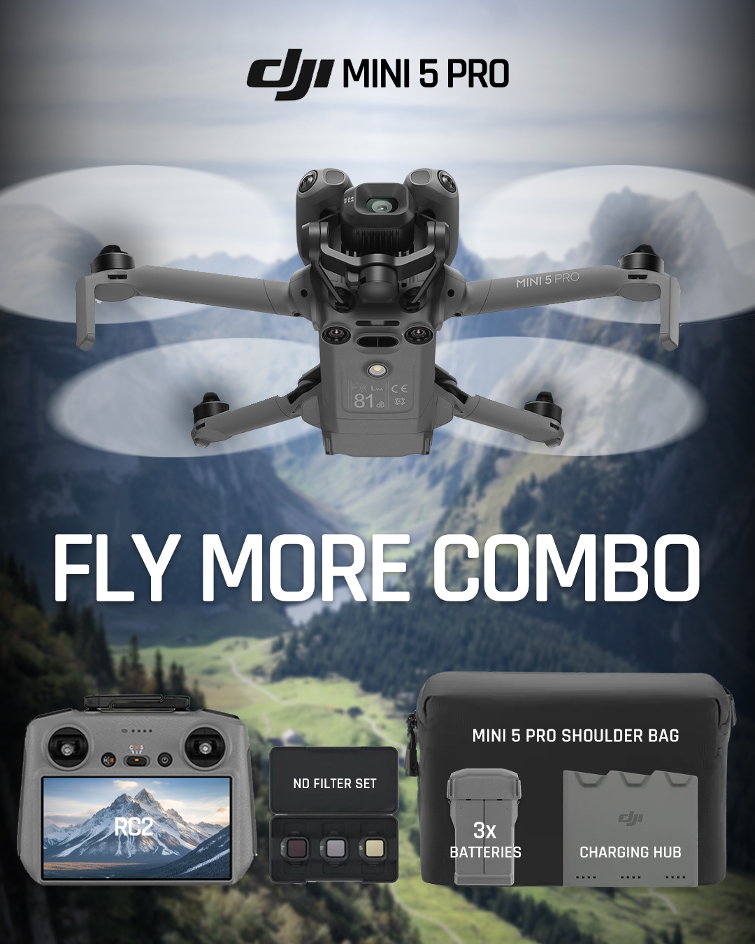 | 1 | 1× | DJI Mini 5 Pro with Fly More Combo & RC 2 |