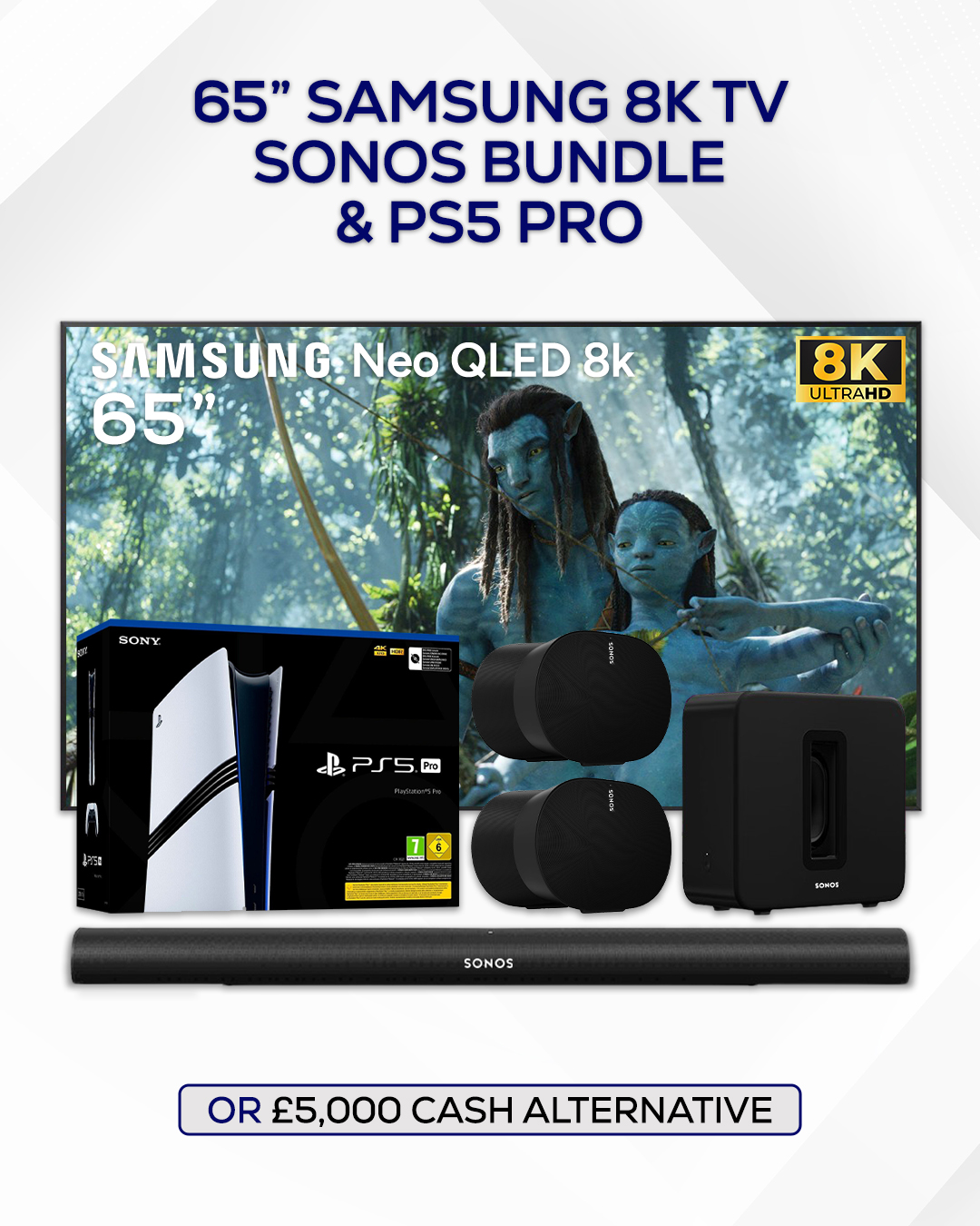 65” Samsung 8K TV, Sonos Bundle & PS5 Pro (or £5,000)