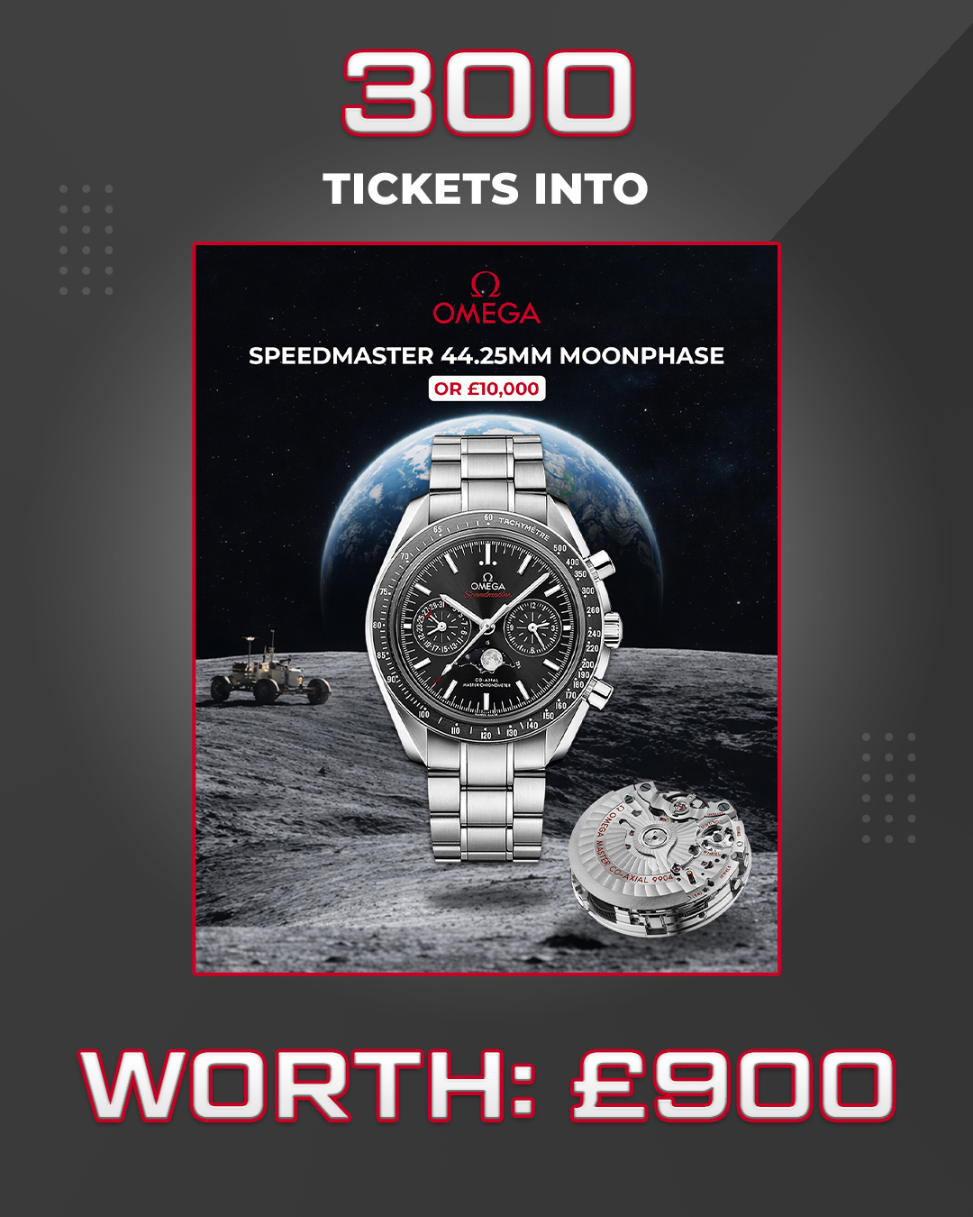 | 1 | 1× | 300 Entries Into The Omega Speedmaster Competition |
