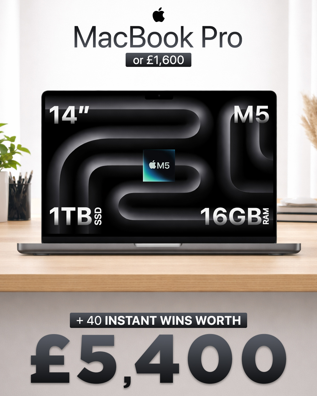 | 1 | 1× | MacBook Pro M5 (or £1,600) |