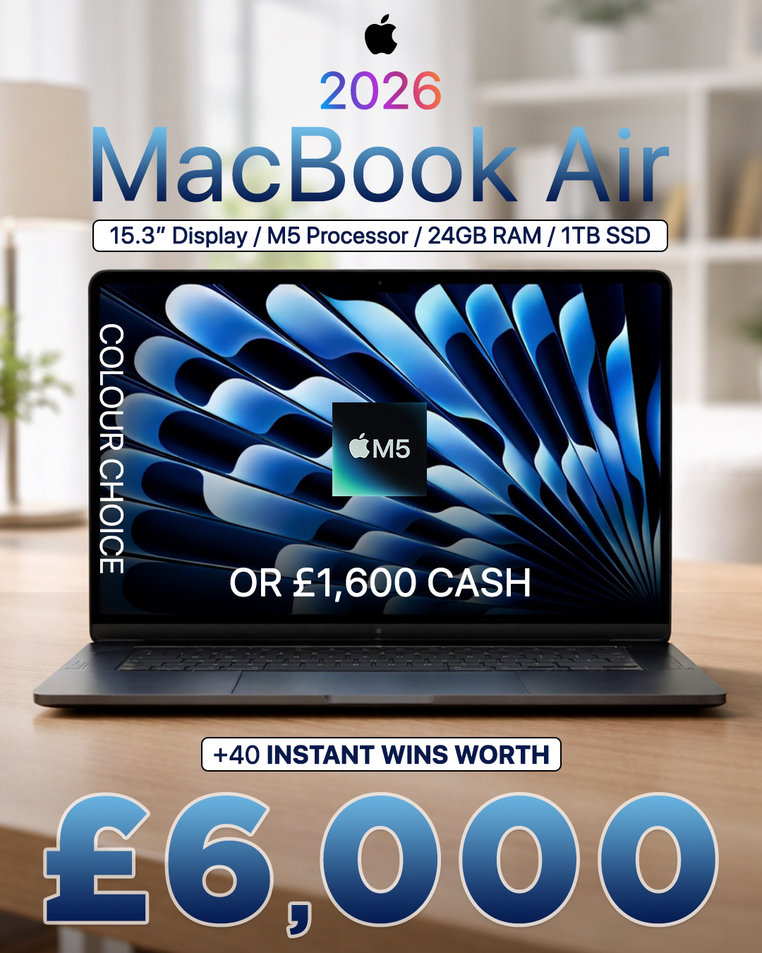 | 1 | 1× | 2026 15.3” MacBook Air M5 (or £1,600) |